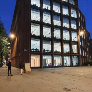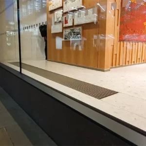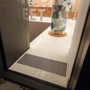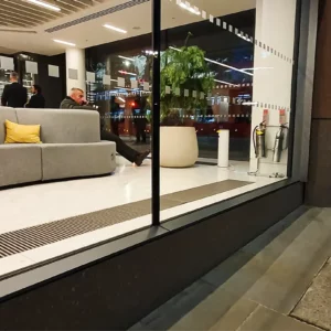 Przy szklanych fasadach w całym pomieszczeniu recepcji zamontowano grzejniki kanałowe z wentylatorem polskiej firmy Verano. Ich efektywna i szybka praca przy dostarczaniu ciepłego powietrza wzdłuż szklanej fasady spowoduje usunięcie kondensacji z dużych przeszkleń i zapewni, przejrzysty widok na katedrę – jeden z bardziej znanych zabytków Londynu.