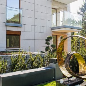 Cztery 2-piętrowe budynki w sumie mieszczą 40 lokali o powierzchniach od 58 do 145 mkw. Każdy budynek posiada podziemnym garaż oraz windę.