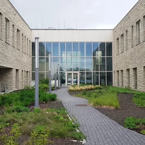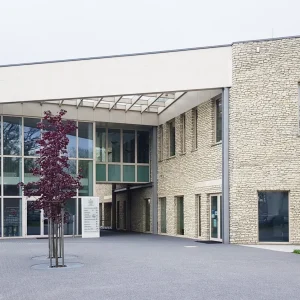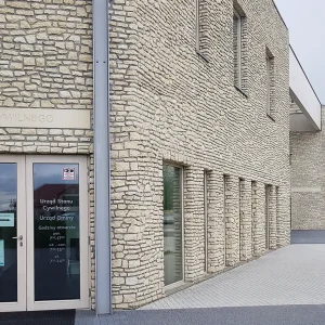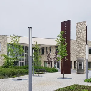 Zarówno przestrzeń przed budynkiem, jak i dziedzińce pomiędzy zostały Wielkannie zaprojektowane i przemyślane. Tak by całość, wraz z budynkiem, była spójna i nowoczesna. Wewnątrz zaprojektowano wnęki z siedziskami, a drzwi do gabinetów są przeszklone, sprawia to wrażenie „otwartego i przyjaznego urzędu”. Elewacja wykonana jest z łamanego wapienia, jest to materiał trwały i ma właściwości samoczyszczenia. Dodatkowo nawiązuje on do historycznej zabudowy regionu i krajobrazu dolin jurajskich.