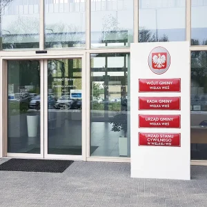 Centrum Administracyjne Gminy Wielka Wieś to projekt, który podkreśla rozwój gminy. Inwestycja obejmuje trzy budynki, które są połączone ze sobą szklanymi holami. Pomiędzy budynkami znajdują się kameralne dziedzińce obsadzone krzewami i kwiatami. Stanowią miejsce do odpoczynku dla odwiedzających urząd oraz pracowników. W pierwszym budynku swoją siedzibę mają Urząd Gminy, Rada Gminy, Urząd Stanu Cywilnego z salą ślubów, Gminny Zakład Komunalny i Biblioteka z kącikiem dla najmłodszych. Pozostała część przeznaczona jest na wynajem.