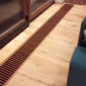 Dom w stylu rustykalnym niedaleko Stuttgartu wywołuje duże zainteresowanie w okolicy. Od podłogi do sufitu – drewno: To, co uważano za przyziemne i staroświeckie, kilka lat temu jest teraz wyjątkowo fajne i modne. Sekretem jest połączenie drewna z czystymi liniami i wieloma szklanymi powierzchniami. Jest więc niezwykle swobodny i współczesny. Atmosfera jest ogrzewana przez nasze grzejniki kanałowe VK15, a kratki rolowane Merbau współgrają z dużą ramą okienną i nadają akcent prawdziwej, drewnianej podłodze.