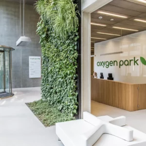 Biurowiec Oxygen Park wybudowany przez Yareal Polska Sp. z o.o. składa się z dwóch sześciokondygnacyjnych budynków, których łączna powierzchnia najmu wynosi 18 400 m2. Pomieszczenia biurowe są duże i przestronne, na całej ich wysokości (2,7m) znajduje się przeszklona fasada. Budynek wyposażony jest w 4 szybkobieżne windy oraz posiada podziemny parking, który pomieści prawie 162 auta. Parter jednego z budynków przeznaczony jest na lokale gastronomiczne. Obydwa budynki posiadają bardzo reprezentacyjną recepcję, która swoim wyglądem podkreśla nowoczesną architekturę budynku.