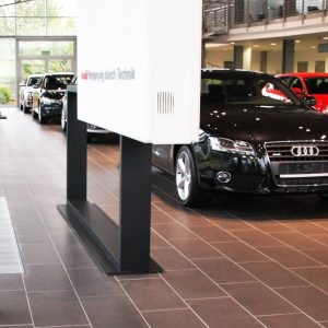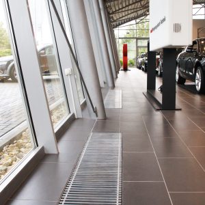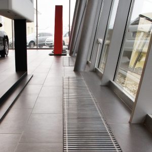 Salon samochodowy AUDI w Częstochowie jest nowoczesnym i przestronnym obiektem z dużymi przeszkleniami, w którym ogrzewanie kanałowe Verano znalazło zastosowanie grzewcze. Ogromna kubatura salonu i przeszklenia, wymusiły zastosowanie urządzeń tego typu. Grzejniki kanałowe wmontowane w posadzkę wzdłuż okien, gwarantują dyskrecję oraz maksimum miejsca potrzebnego w tego typu działalności ekspozycyjnej jaką jest prezentacja najnowszych rozwiązań motoryzacyjnych.